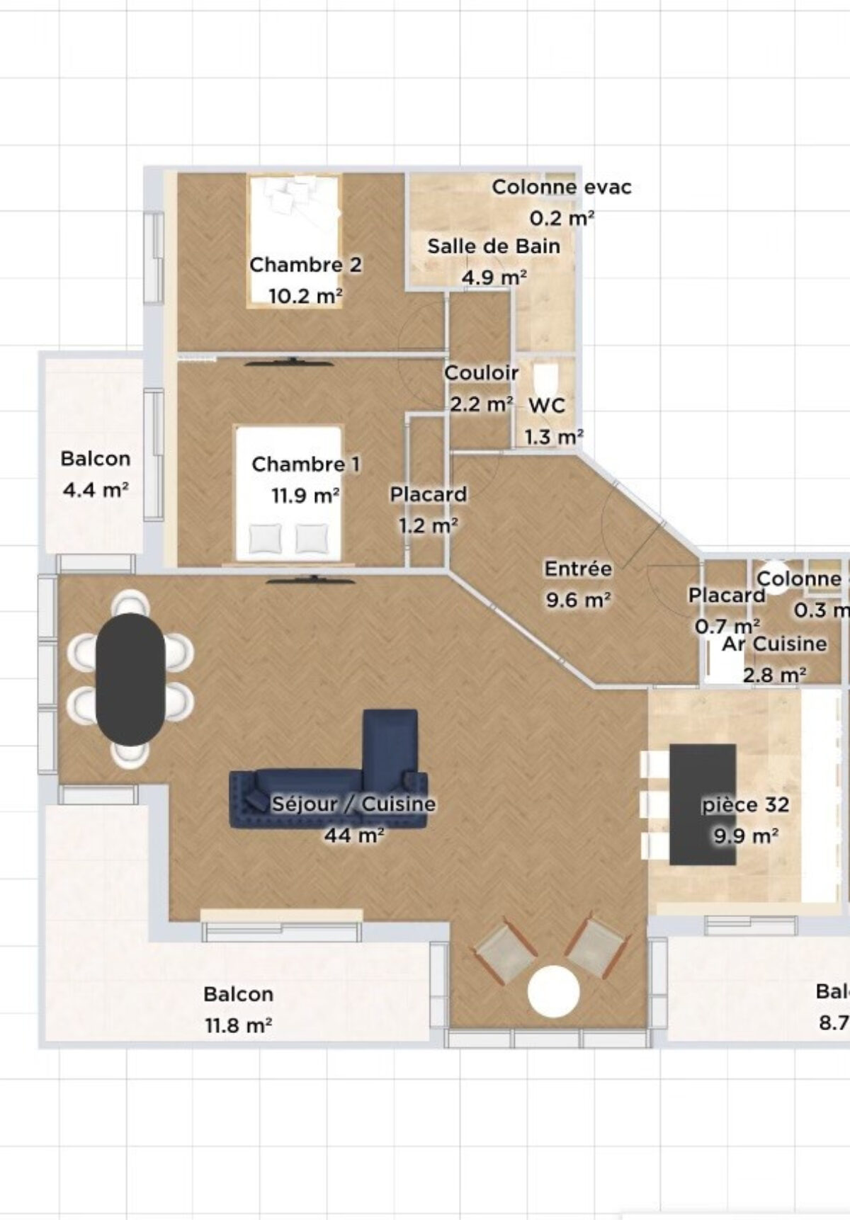 4 pièces 98.6m²