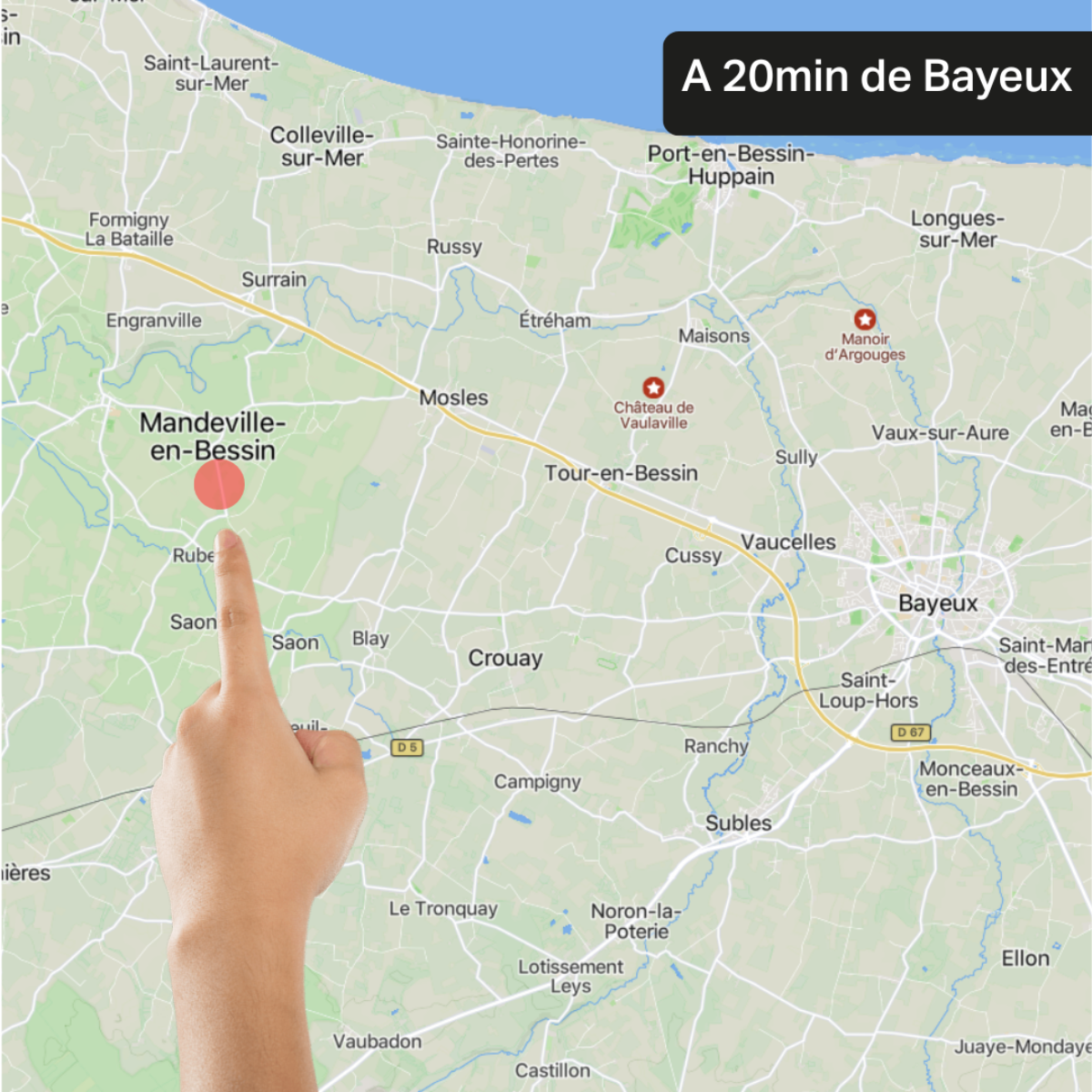 - Localisation recherchée : emplacement stratégique et cadre paisible pour le tourisme et les événements. Proche des plages du débarquement, de Bayeux et de Caen.