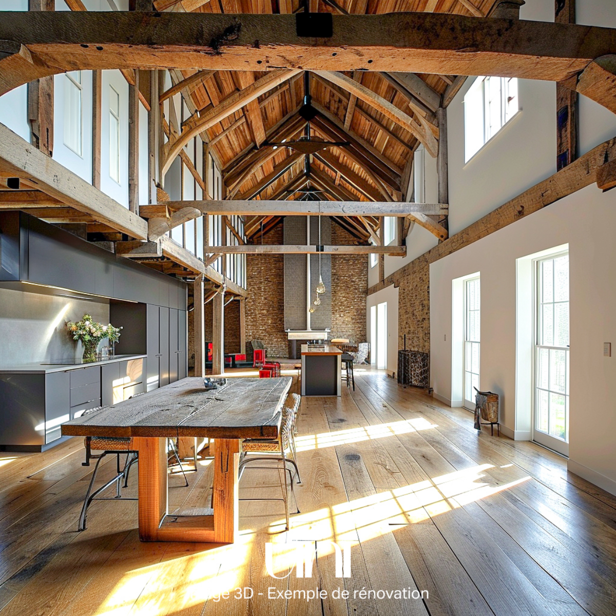 Cette structure est l’élément majeur de la grange, elle est le témoignage de son passé et lui apporte son style rustique chaleureux.