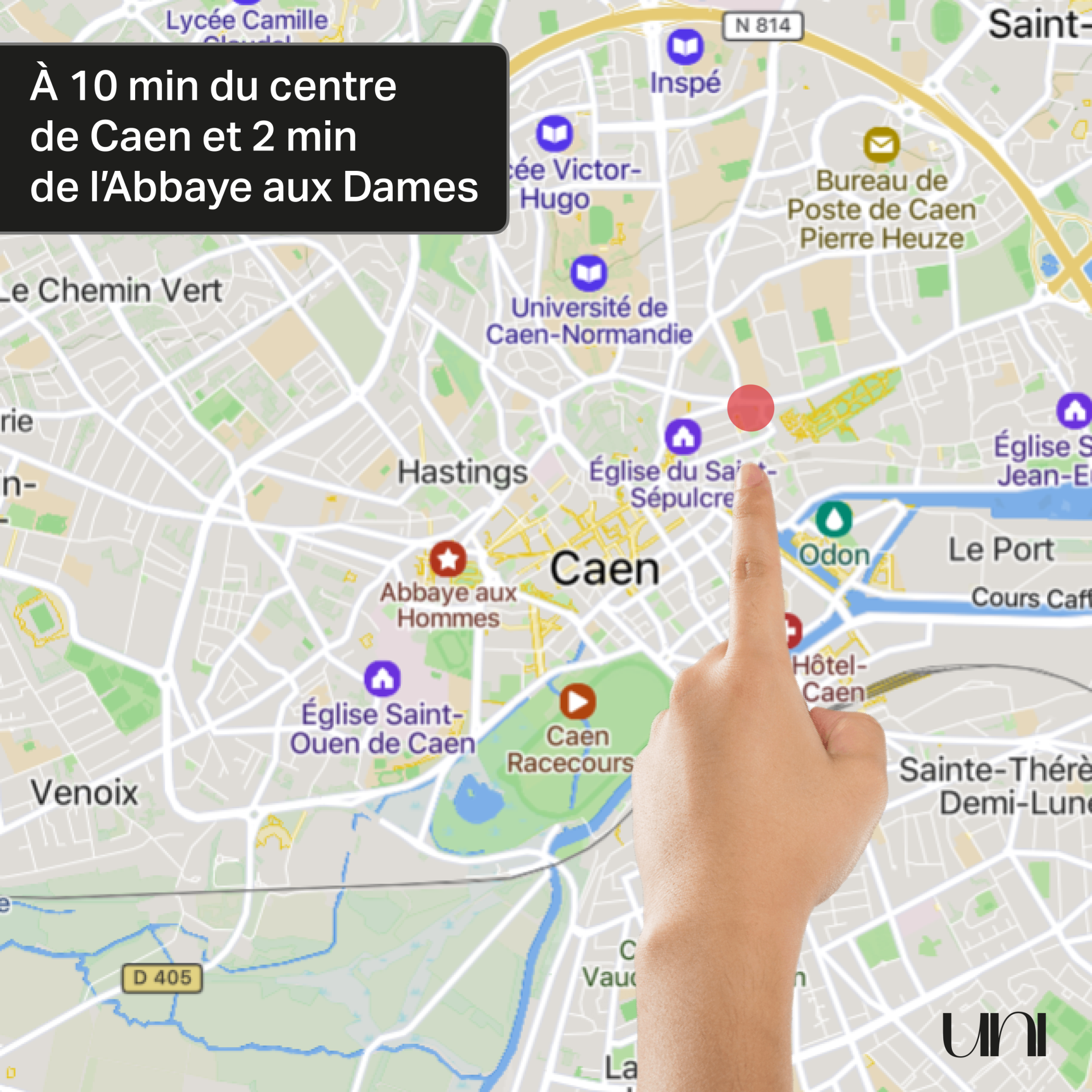 LOCALISATION : Caen à 10 min à pied du centre-ville et à 2 min de l'Abbaye aux Dames