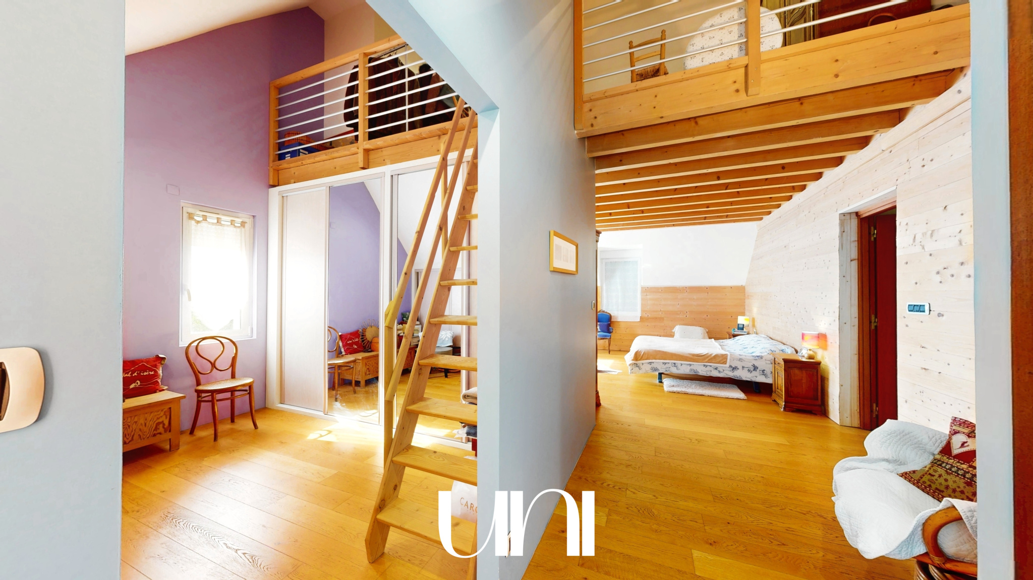 - 2 chambres avec mezzanines, dont une avec son bureau