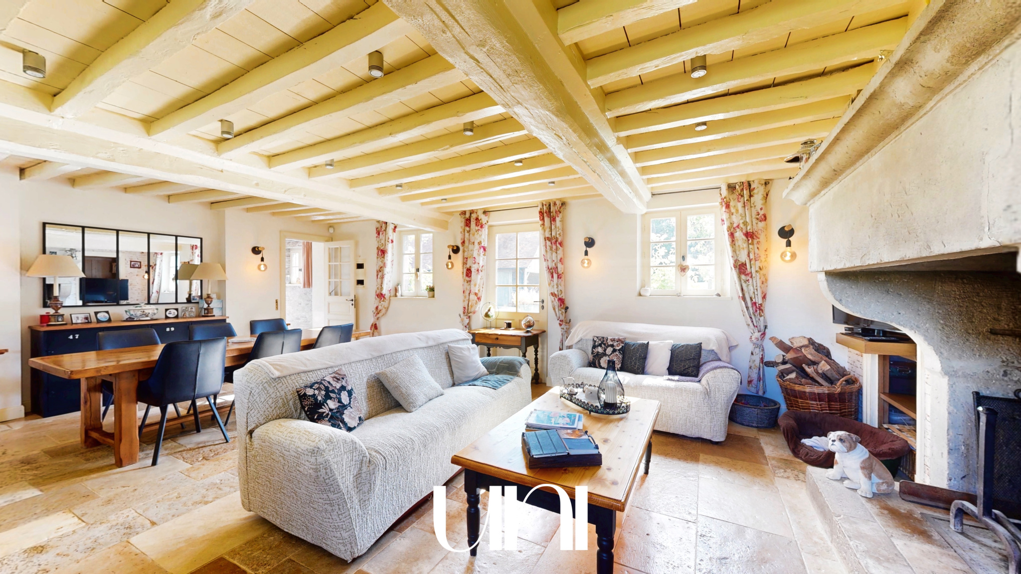 - une belle pièce de vie avec sa cheminée ouverte