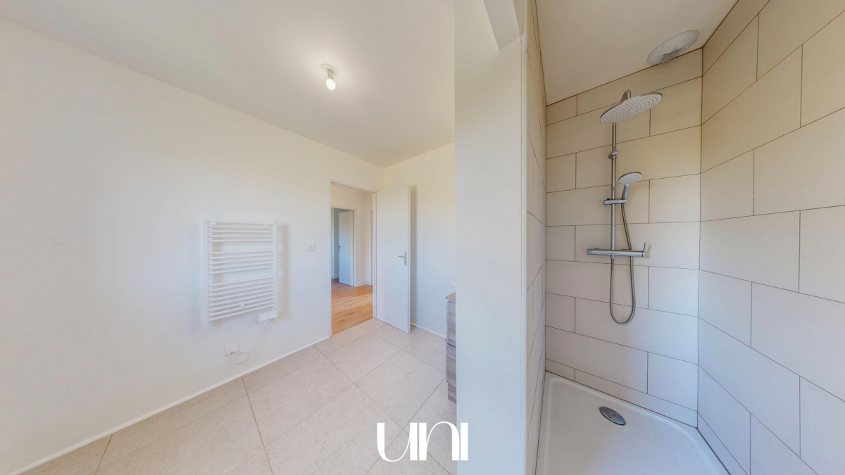 - Une salle de bain avec douche et arrivée prévue pour une baignoire