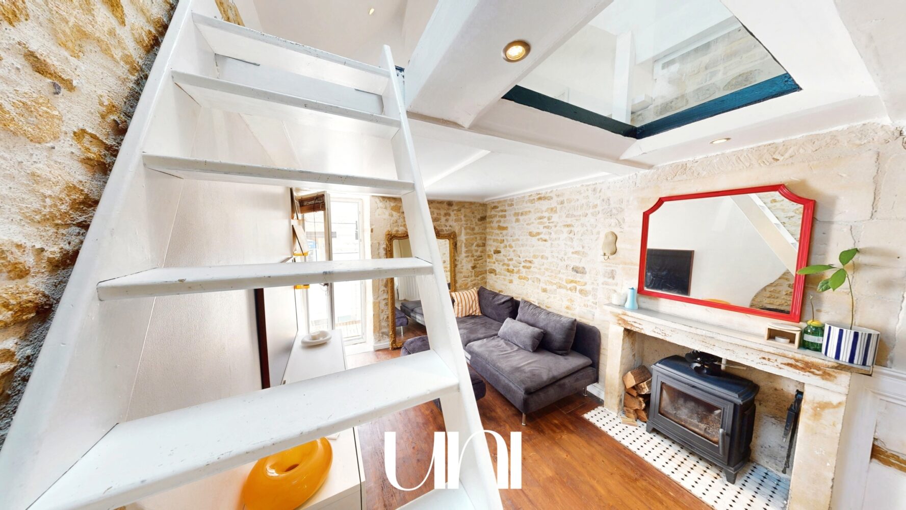 1er étage : - salon / salle à manger 2eme étage : - 1 chambre - 1 dressing aménagé sous combles Balcon Huisseries : Double vitrage (PVC et bois)