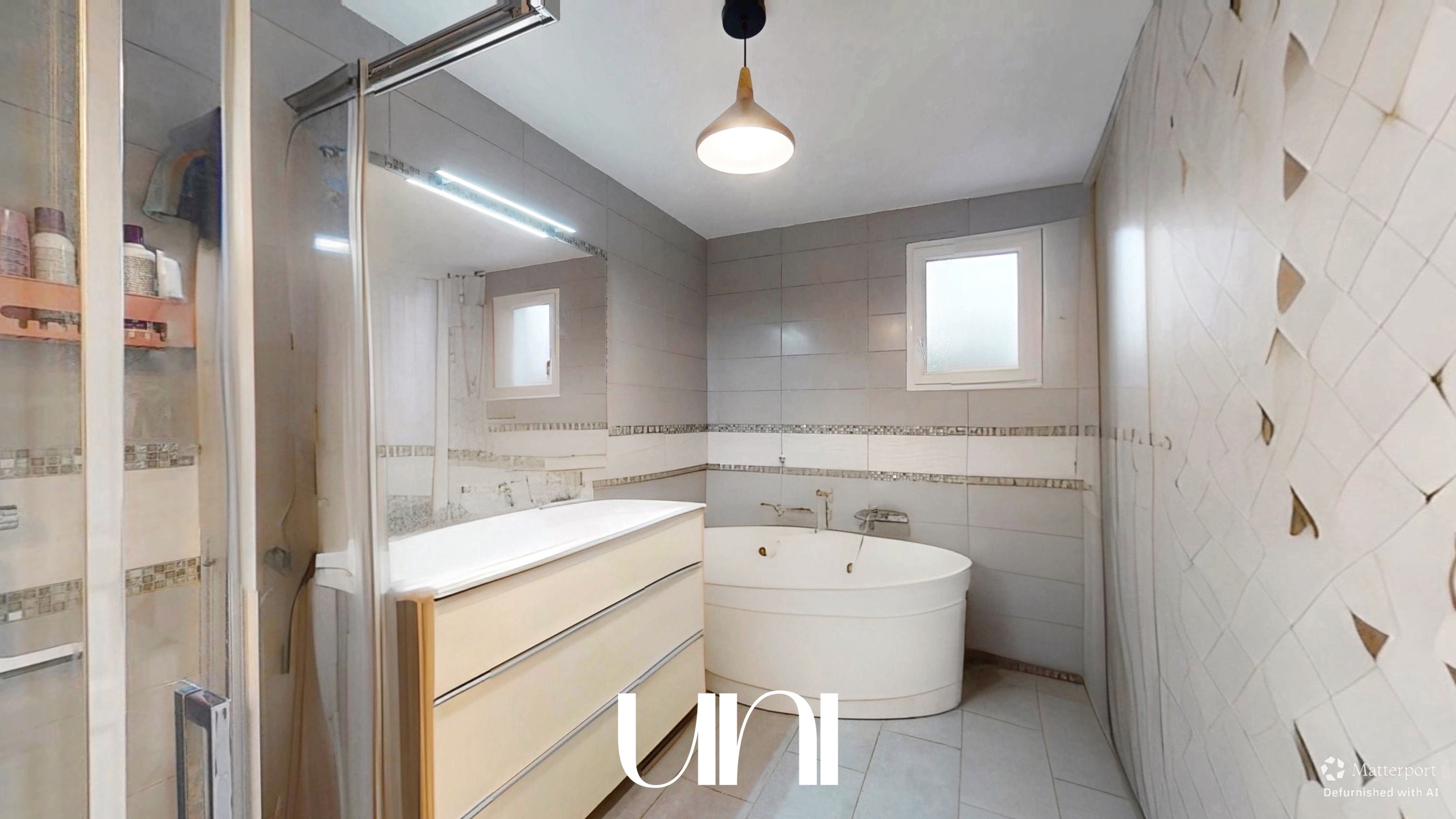 - 1 salle de bain avec douche et baignoire