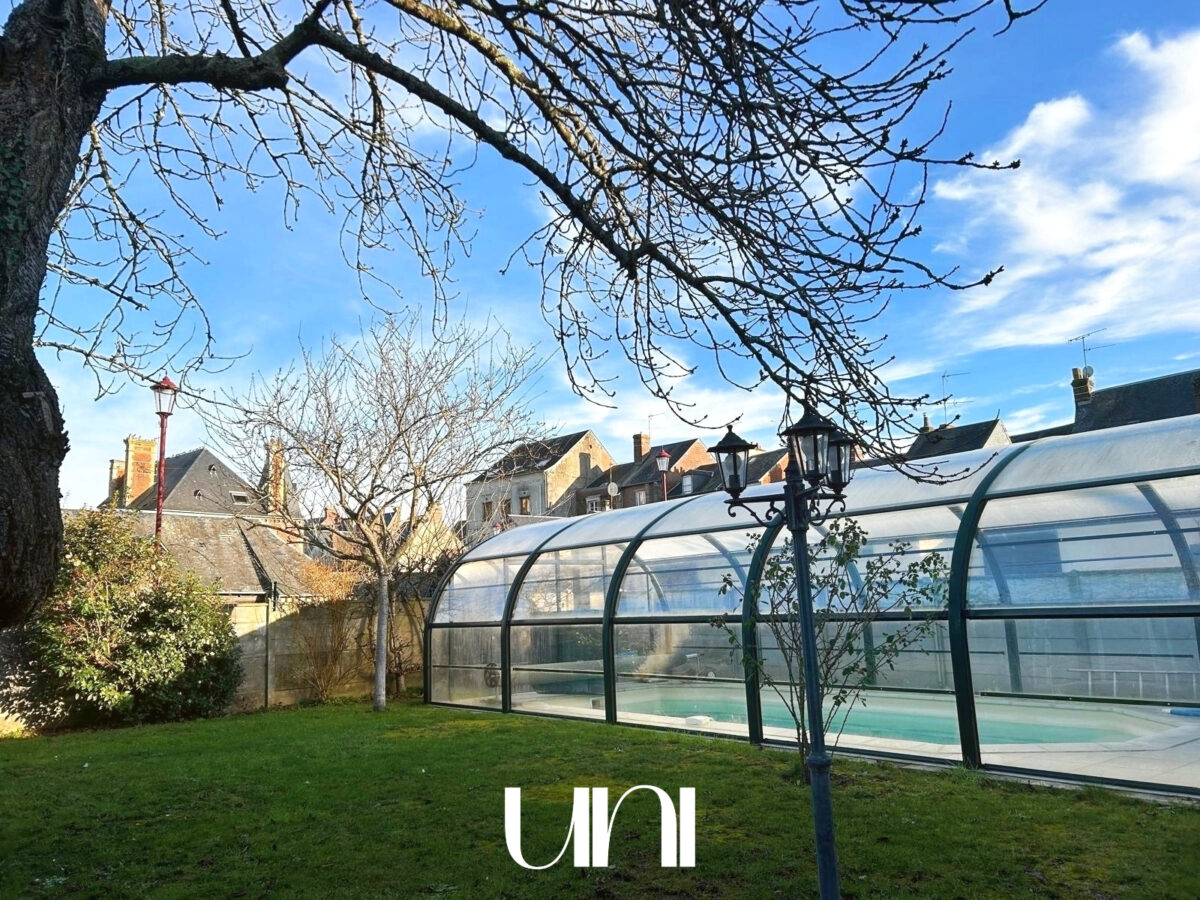 Jardin, terrasse, piscine couverte chauffée.