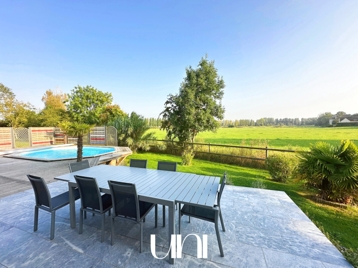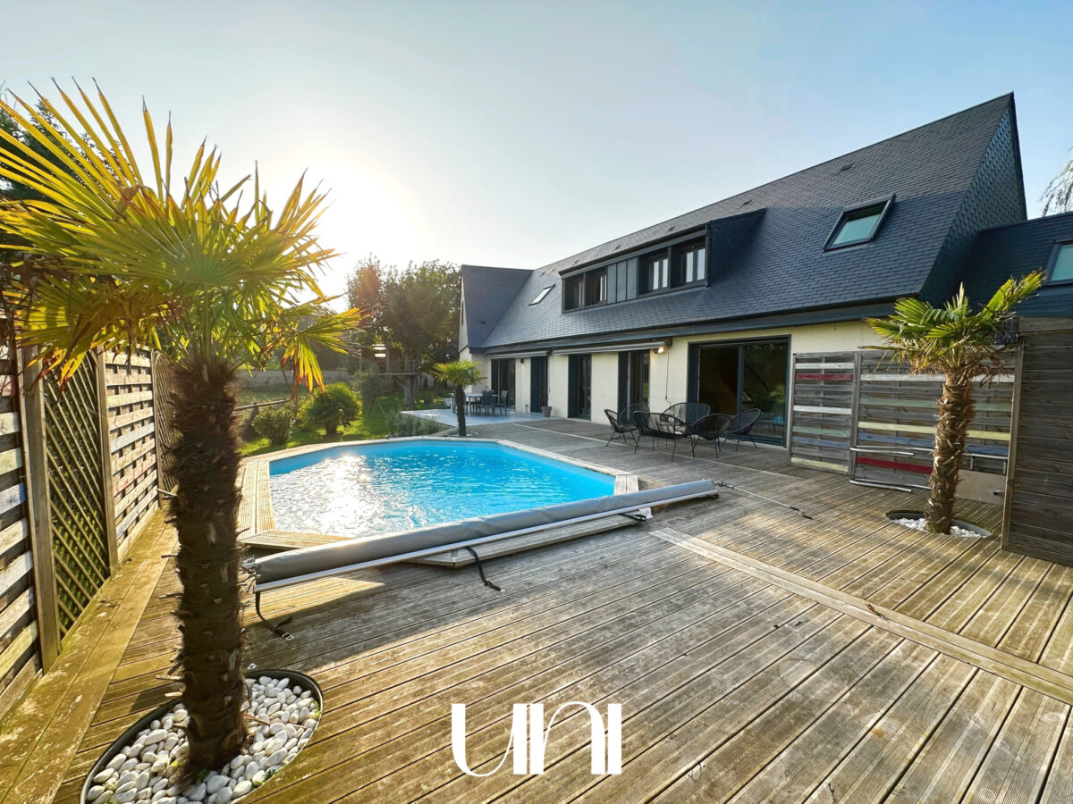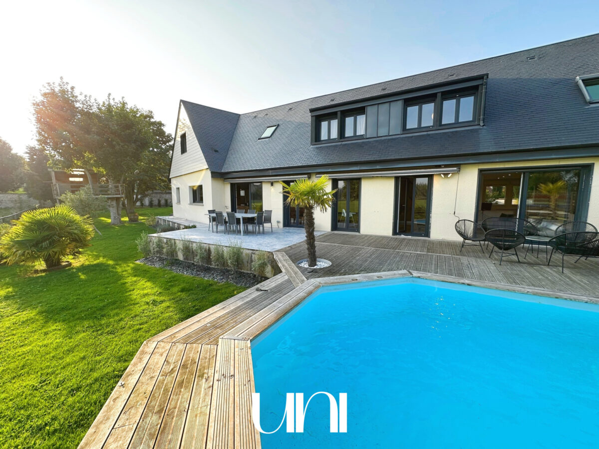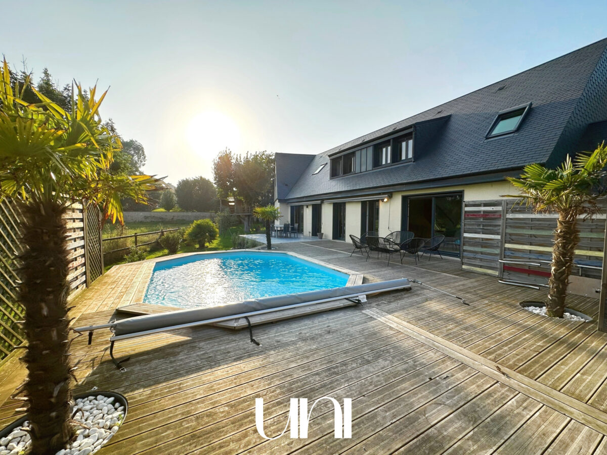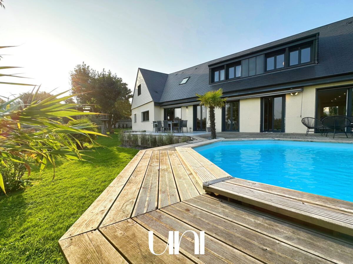 Terrasse, piscine, grand garage.
