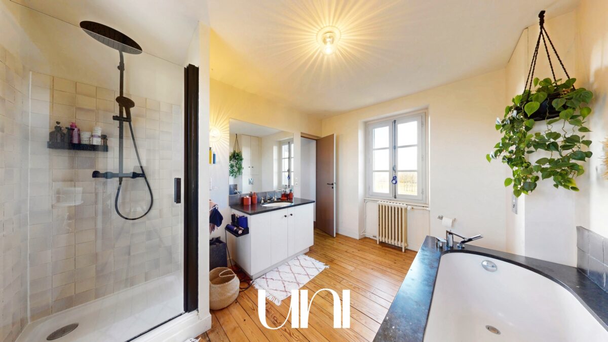 - 1 salle de bain (douche + baignoire + WC)