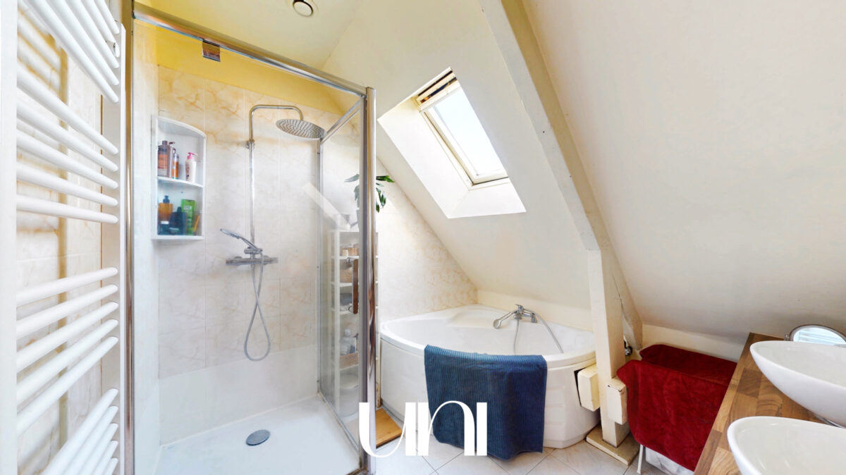 - 1 salle de bain avec douche et baignoire