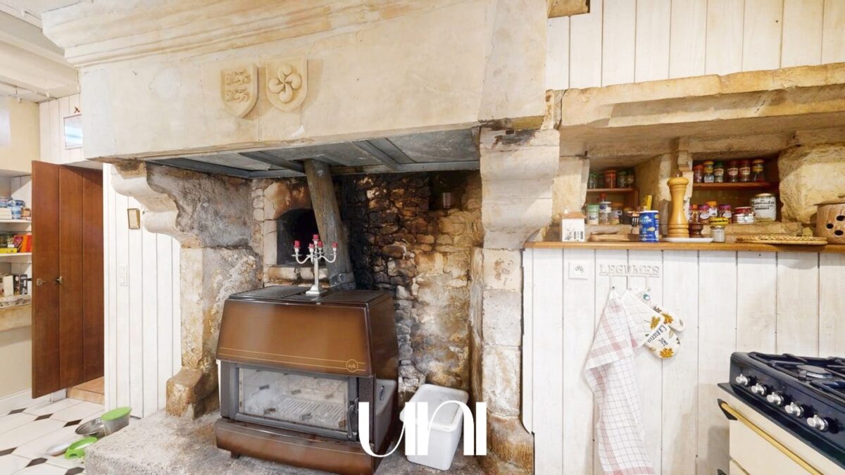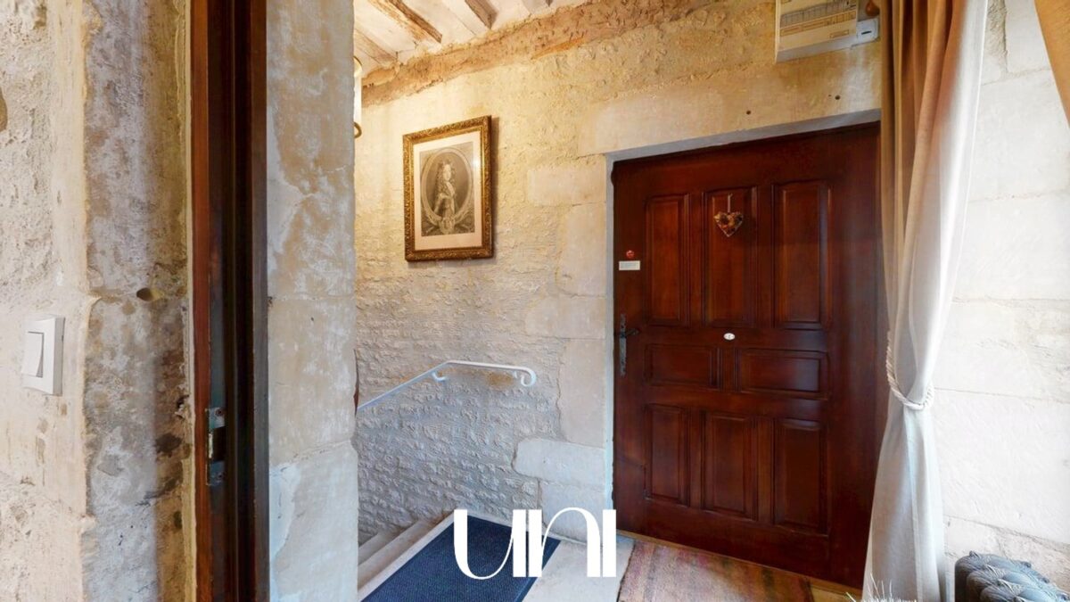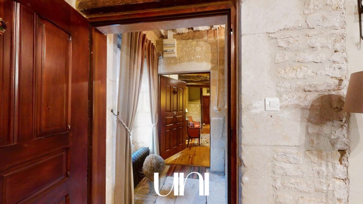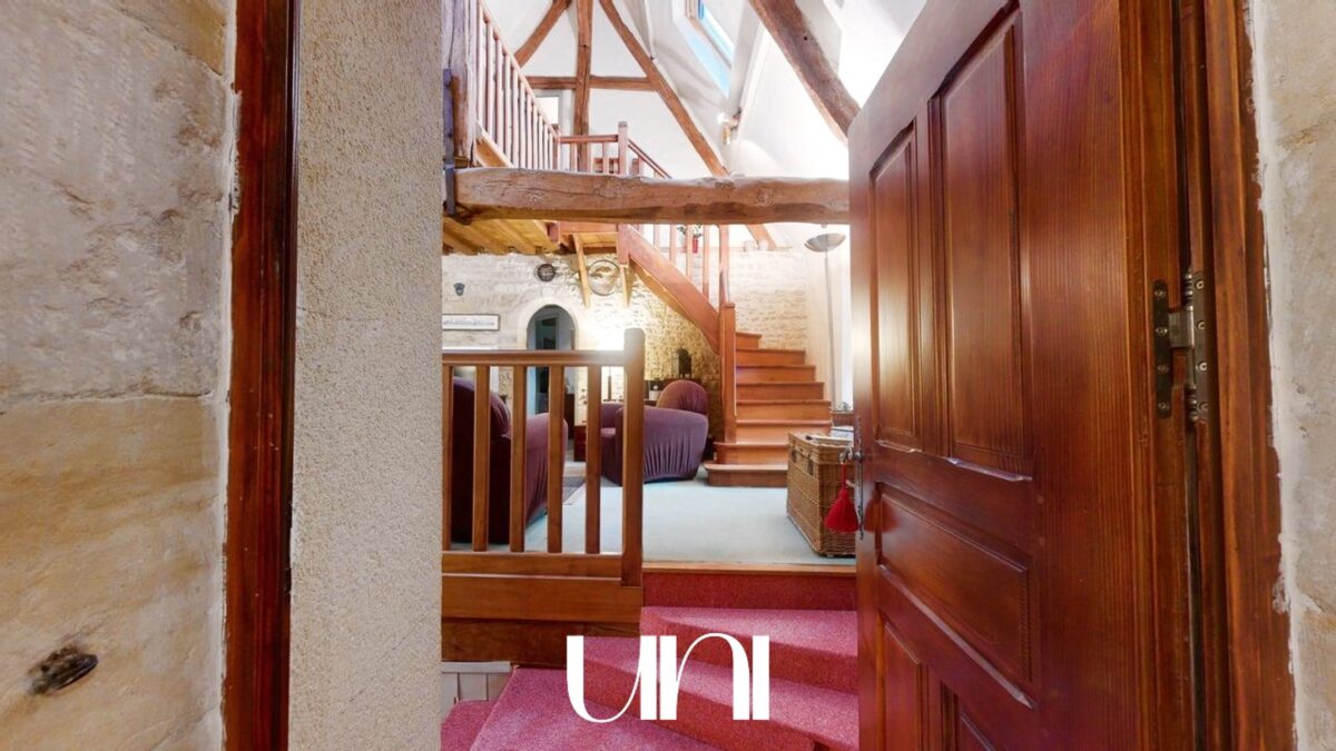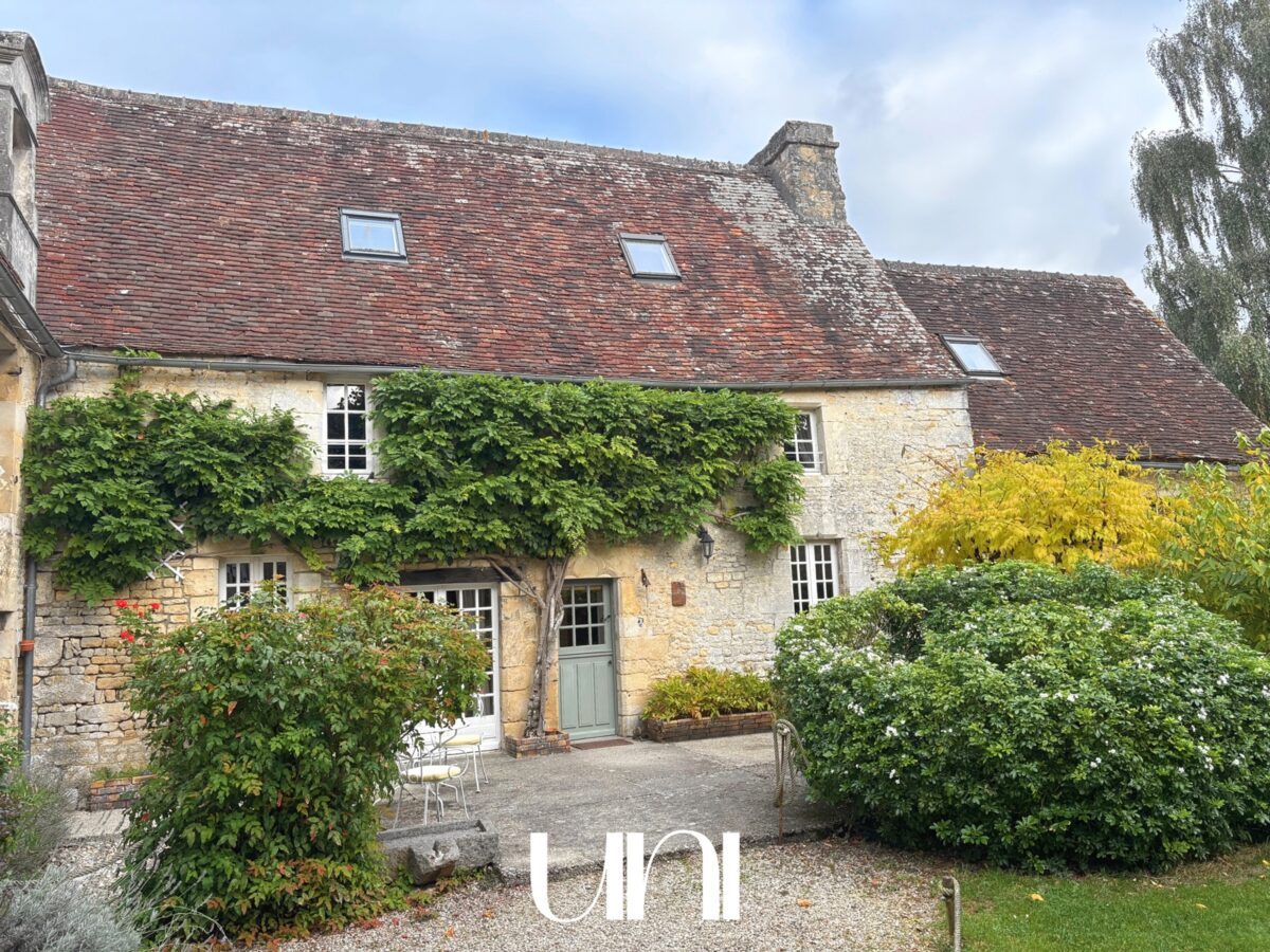 Une seconde entrée indépendante donne accès à un superbe escalier en pierre de Caen qui dessert le deuxième logements (à usage de gite actuellement) et qui peut rejoindre le grand salon de la maison familliale.