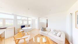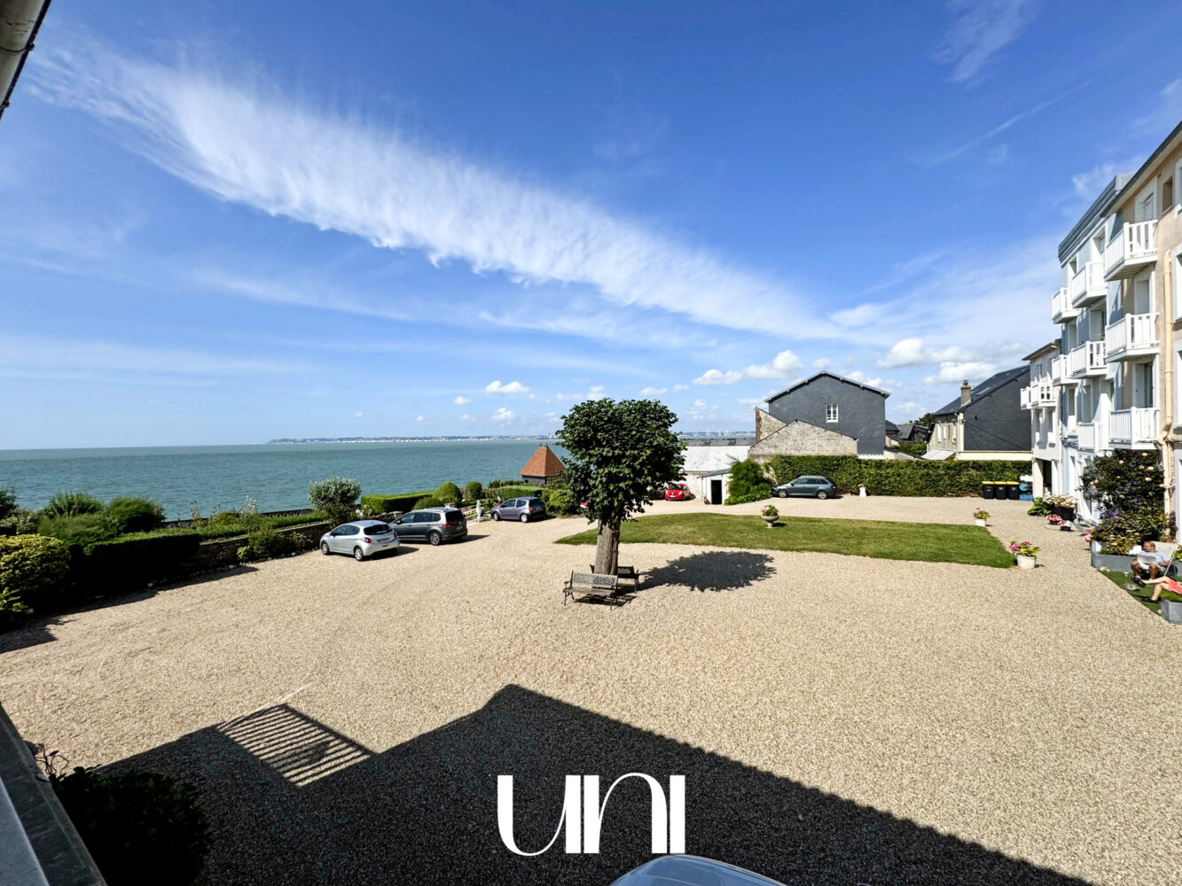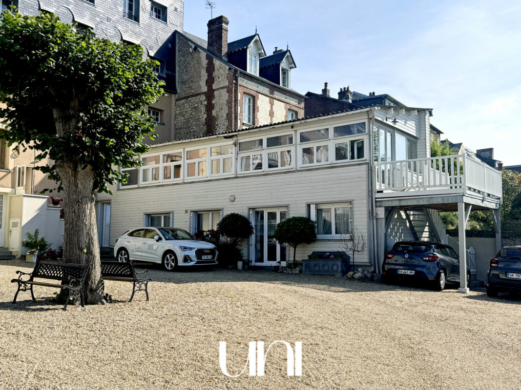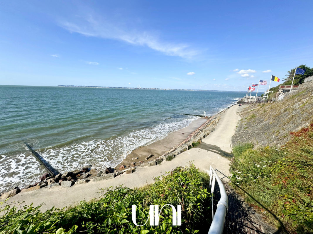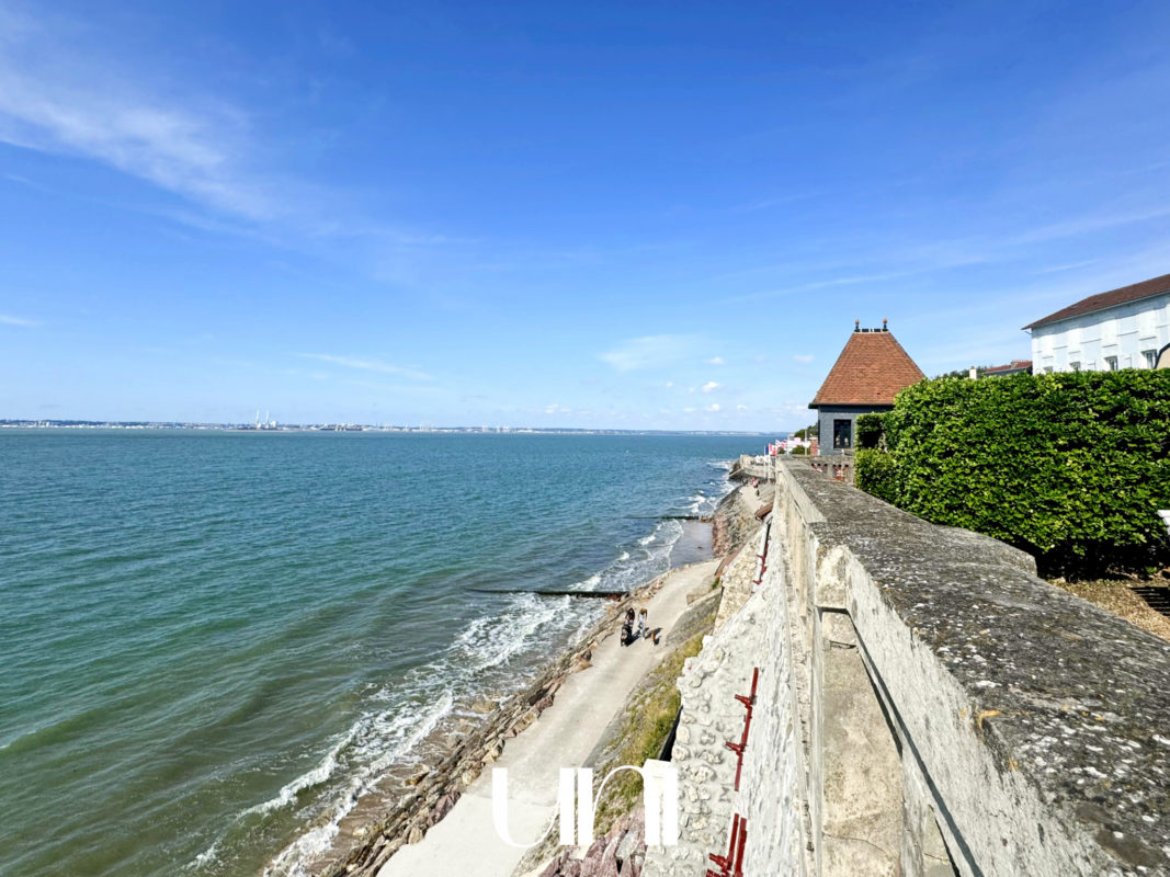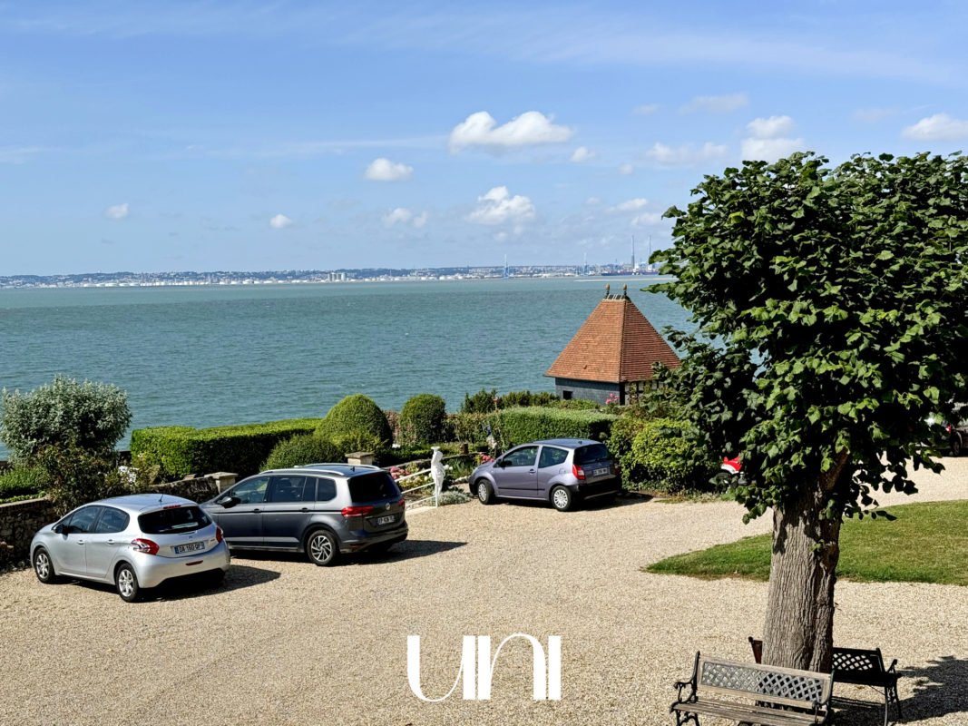 Situé dans l'une des résidences les plus côtées de Villerville, cet appartement vue mer dispose d'une cour commune offrant un accès privatif à la plage.