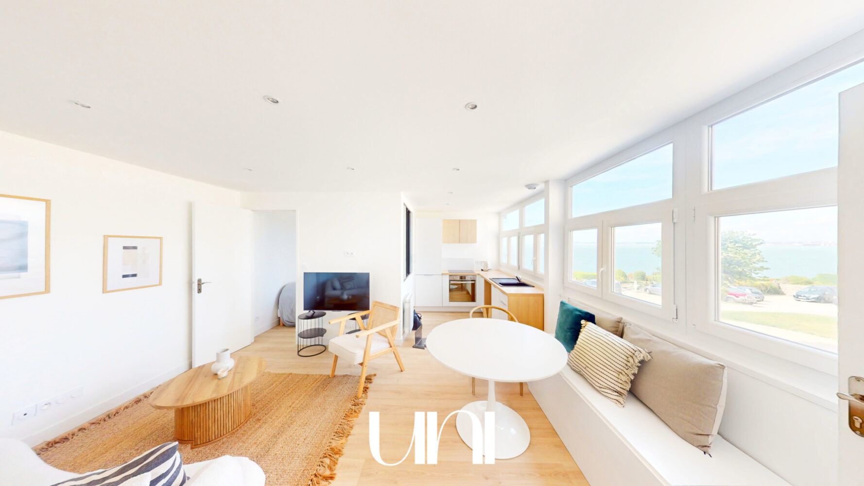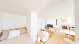 Magnifique T2 de 34m2 en front de mer composé d'un salon, une cuisine ouverte et équipée (four, lave-vaisselle, réfrigérateur, micro-ondes), une salle d'eau avec WC, une chambre et un espace pouvant accueillir un second lit deux places ou un bureau. Situé au premier et dernier étage d'un résidence anciennement restaurant panoramique vue mer d'un ancien hôtel.