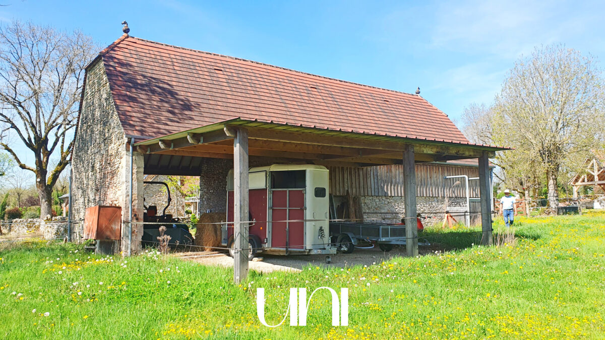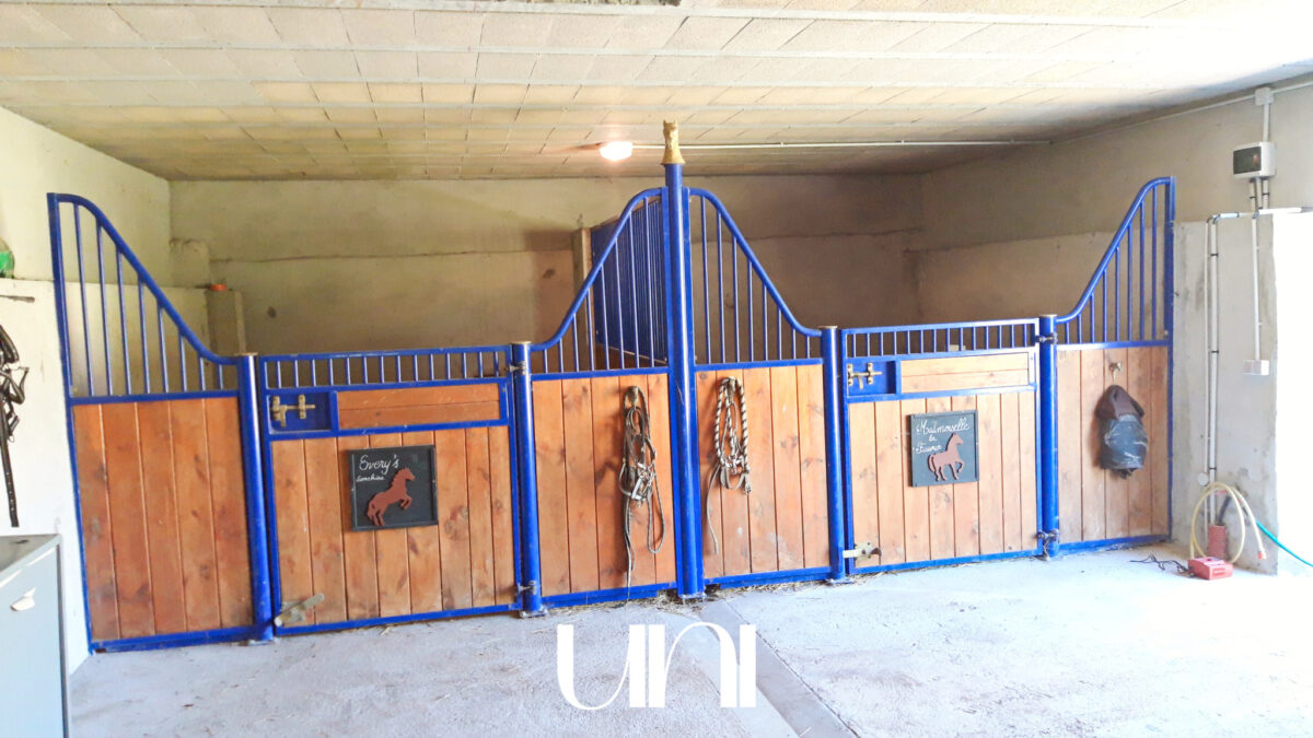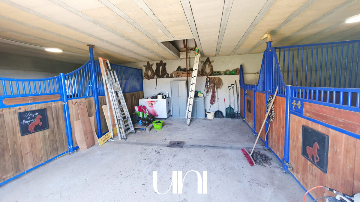 Une grange de 120m2 récemment restaurée (toiture et charpente neuves) abrite trois box pour les chevaux.