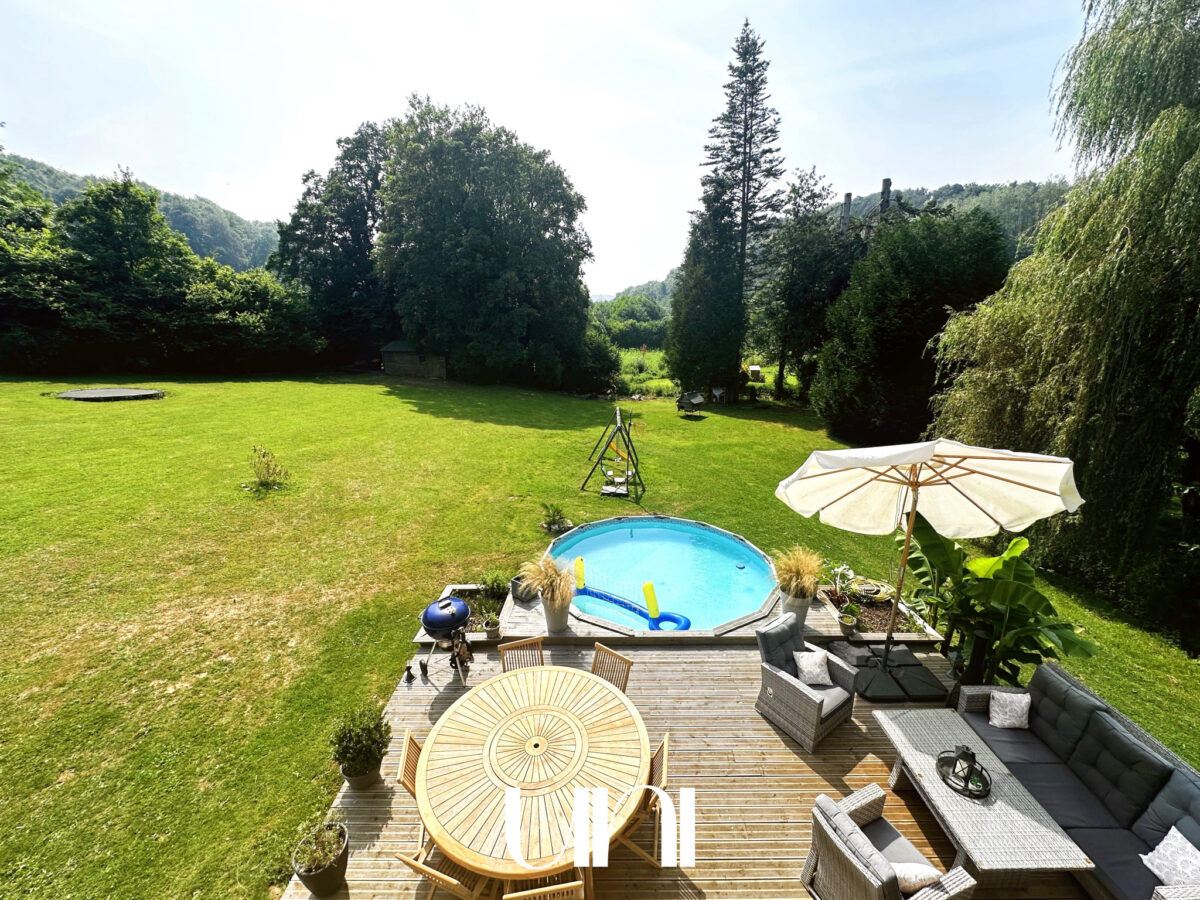Côté extérieur une grande terrasse ensoleillée Terrain d'environ 4000 m2 dans un environnement calme et bucolique
