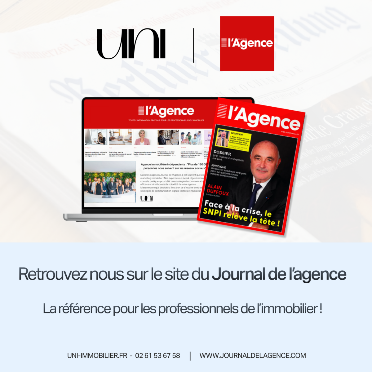 Retrouvez UNI Immobilier sur le site web du Journal de l’agence !